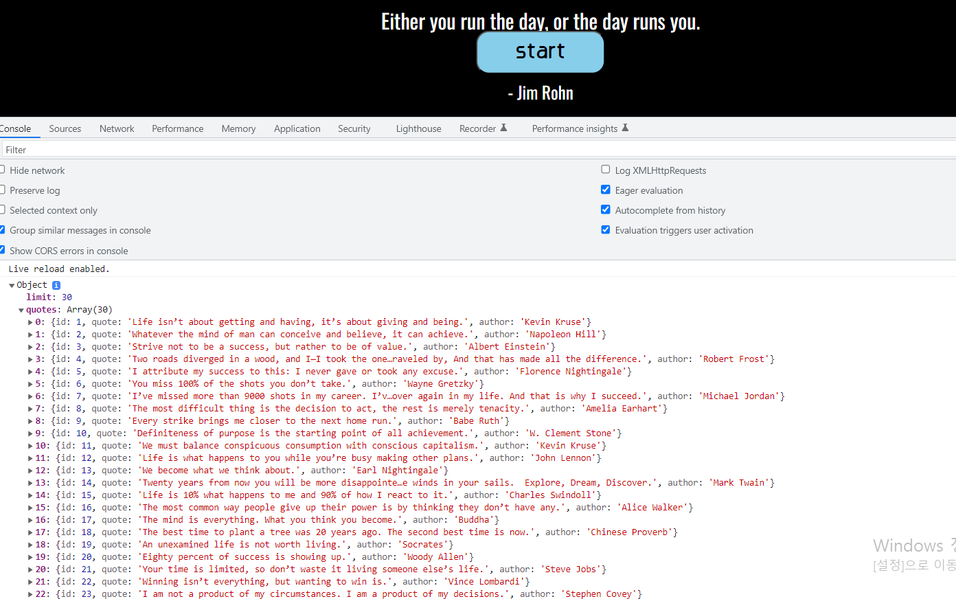 마지막으로 `a` 배열의 요소들을 순서대로 출력하는 반복문이 실행됩니다.